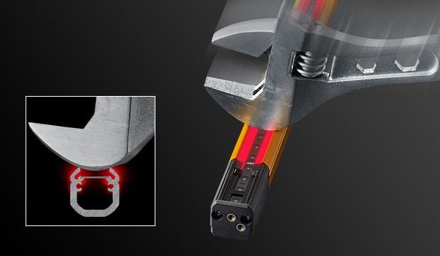 安全光柵GL-V 系列搭載大型線狀指示燈,僅靠本體即可清楚顯示狀態(tài)。當(dāng)入光時(shí)顯示綠色,遮光時(shí)顯示紅色,即使從遠(yuǎn)處也能一眼辨識(shí)光柵是否遮光,有助於迅速復(fù)原作業(yè)。此外,透過顯示模式還可確認(rèn)受光量降低或錯(cuò)誤狀態(tài),便於及早採取對(duì)策。GL-V 系列可廣泛應(yīng)用於設(shè)備啟動(dòng)、調(diào)整與運(yùn)轉(zhuǎn)階段。雖然尺寸僅為22 mm × 22 mm,卻具備約3 mm 厚的堅(jiān)固外殼結(jié)構(gòu),展現(xiàn)高耐用性。重新設(shè)計(jì)的內(nèi)部光學(xué)構(gòu)造更支援最長15 公尺的檢測(cè)距離。