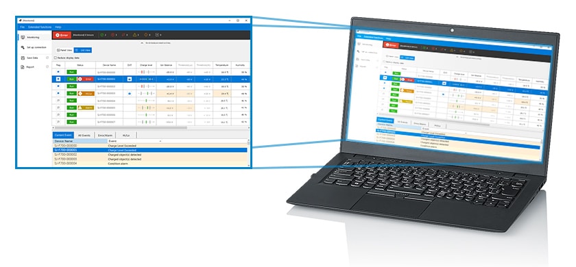 智能監(jiān)控靜電消除器「SJ-F700系列」將迄今為止靜電消除器所必須的定期維護(hù)實現(xiàn)了「全自動化」。不僅是電極針的清潔、電極針磨損所導(dǎo)致的更換、連靜電消除器的性能確認(rèn)也不需人力即可自動應(yīng)對。完全免維護(hù),卻可持續(xù)維持同級最高的靜電消除性能(離子平衡±1 V、靜電消除速度0.5秒、靜電消除範(fàn)圍3 m)。並且,將肉眼不可見的靜電數(shù)值化,在內(nèi)部記錄運行情況,讓原本模糊的靜電對策更加確實可靠。無須操作,即可持續(xù)確實消除靜電。SJ-F700系列是可以有效作為靜電破壞(ESD)、異物附著等靜電問題對策的靜電消除風(fēng)扇。