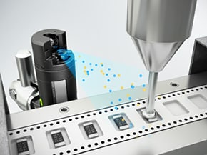 準(zhǔn)備了支援?6 mm軟管的2種管嘴。即便是無法安裝本體的狹窄場所,亦可透過使用軟管,實(shí)現(xiàn)單點(diǎn)的除塵和靜電消除措施。