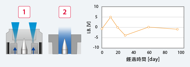 A.C.A.B 採用Clean Air Barrier進(jìn)一步進(jìn)化而來的Advanced Clean Air Barrier系統(tǒng)??刂乒┙o的CDA流動(dòng),在電極周邊形成「層流」。透過大幅減少導(dǎo)致靜電消除性能退化的電極前端「附著物」,實(shí)現(xiàn)減少維護(hù)業(yè)務(wù)的目的。