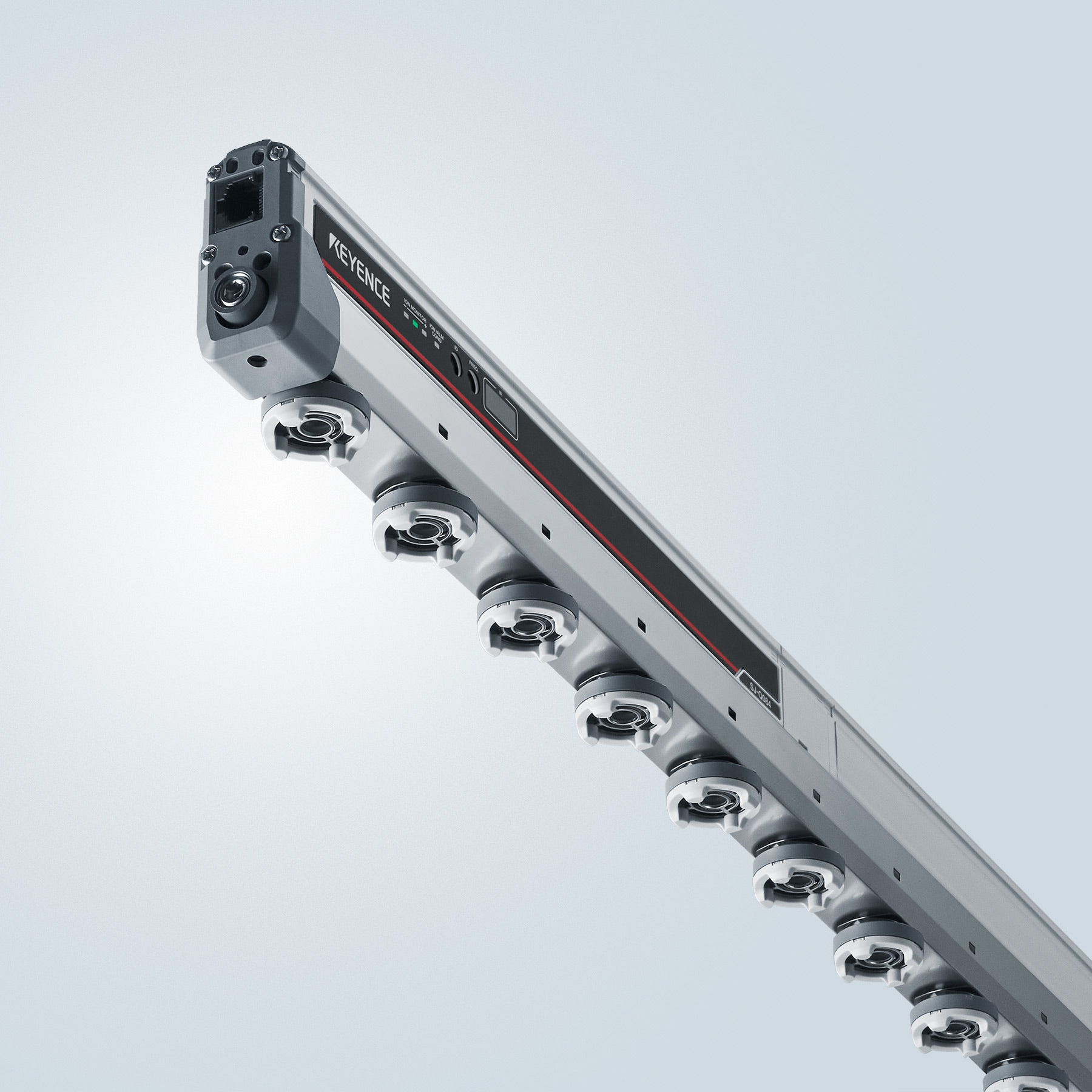 Hybrid高精度高速靜電消除器「SJ-Q 系列」實(shí)現(xiàn)了較以往產(chǎn)品高10倍的靜電消除能力(離子平衡±3 V,靜電消除速度0.1秒)。大幅減少了以往靜電消除器在電極針清潔和磨損方面的風(fēng)險(xiǎn)與工時(shí)。免維護(hù)且能持續(xù)確保可靠的靜電消除效果。以往需要每1到2年進(jìn)行更換的電極針,現(xiàn)在10年內(nèi)無需更換。原本需要每2到4週進(jìn)行清潔的電極針,現(xiàn)在1年免清潔??纱蠓鶞p低靜電消除器的營(yíng)運(yùn)成本。世界首創(chuàng)的Inside Supersonic結(jié)構(gòu)顛覆了靜電對(duì)策的常識(shí)。